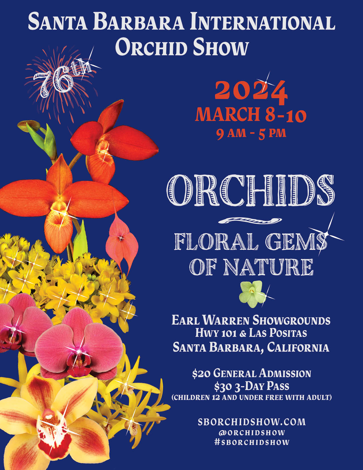 The Santa Barbara International Orchid Show will take place at Earl Warren Showgrounds from March 8th - 10th, 9 AM - 5 PM. Orchids After Dark will take place on Saturday, March 9th from 6 PM to 9 PM.
