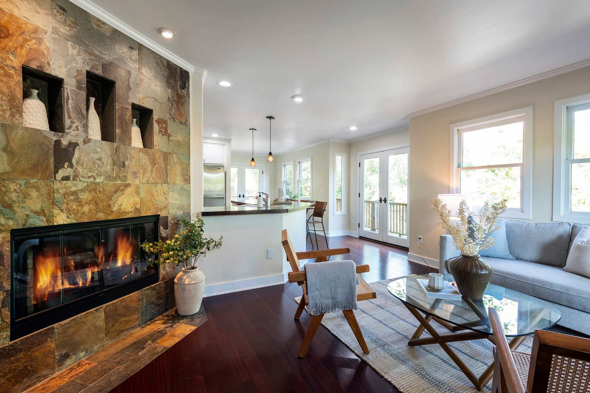 Discover the epitome of coastal living in this tastefully renovated townhouse nestled in the heart of Summerland. Surrounded by open space and a creek setting, this turn key home enjoys privacy and tranquility. Natural light emanates through a multitude of French doors and windows, creating a light & bright ambience inside the home. The open concept kitchen and living space flow effortlessly to the outdoor dining and entertaining area. Upstairs, vaulted ceilings accentuate the ocean and setting views from the bedrooms. Convenient off-street parking is afforded with the deep garage. Positioned behind the popular Field + Fort and The Sacred Space, and blocks from Summerland Beach, amazing shops and restaurants, this home offers the ultimate beach lifestyle.