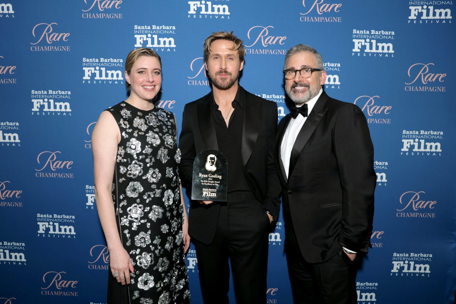 Saturday, January 13 - actor Ryan Gosling received the Santa Barbara International Film Festival Kirk Douglas Award for Excellence in Film. The event took place at The Ritz-Carlton Bacara and was a black-tie benefit dinner for Santa Barbara International Film Festival educational programs. Speeches were given by former co-star Steve Carell and Barbie director Greta Gerwig.