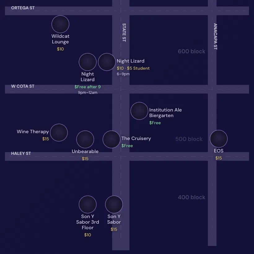 Build your own music festival at State Fest - A one night, multi-venue nightlife festival experience in Downtown Santa Barbara! Stop by 8 different Downtown venues, including Wildcat, Night Lizard, and Institution Ale, who will be hosting 12 stages with over 30 performers! Performers will include False Puppet, DJ Darla Bea, Wyatt Earp, The Coveralls and many other local bands and DJ's. Pay the cover charge as you go, or purchase a VIP ticket including no cover fees, drink discounts, and skip-the-line access at participating venues. A fun way kick off the Spring season with friends, drinks, and live local music!